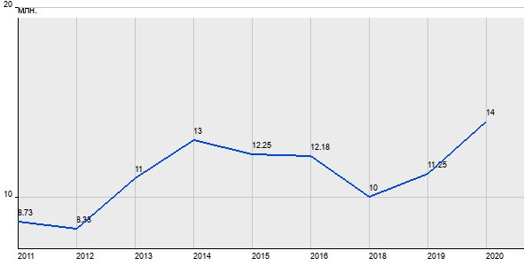 8.73 млн. руб, а в 2020 году - 14 млн. руб. Таким образом, средняя стоимость двухкомнатных квартир в районе "Тверской" за