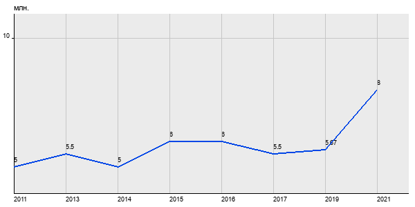 5 млн. руб, а в 2021 году - 8 млн. руб. Таким образом, средняя стоимость однокомнатных квартир в районе "Царицыно" за