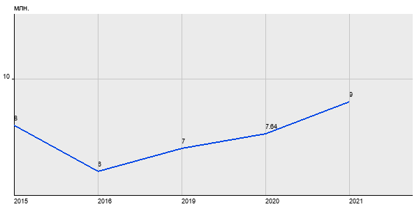 8 млн. руб, а в 2021 году - 9 млн. руб. Таким образом, средняя стоимость однокомнатных квартир в районе "Аэропорт" за