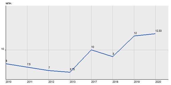 8 млн. руб, а в 2020 году - 12.33 млн. руб. Таким образом, средняя стоимость двухкомнатных квартир в районе "Очаково-Матвеевское" за