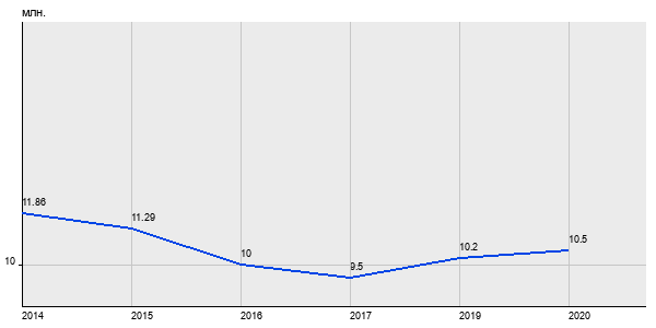 11.86 млн. руб, а в 2020 году - 10.5 млн. руб. Таким образом, средняя стоимость двухкомнатных квартир в районе "Южное Медведково" за