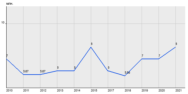 7 млн. руб, а в 2021 году - 8 млн. руб. Таким образом, средняя стоимость двухкомнатных квартир в районе "Северный" за