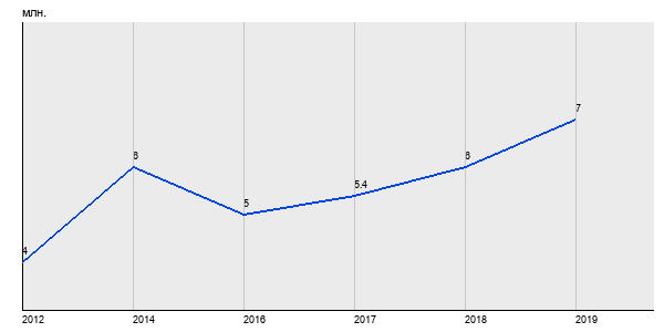 4 млн. руб, а в 2019 году - 7 млн. руб. Таким образом, средняя стоимость однокомнатных квартир в районе "Новогиреево" за