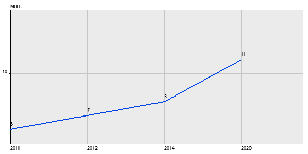 6 млн. руб, а в 2020 году - 11 млн. руб. Таким образом, средняя стоимость однокомнатных квартир в районе "Крылатское" за