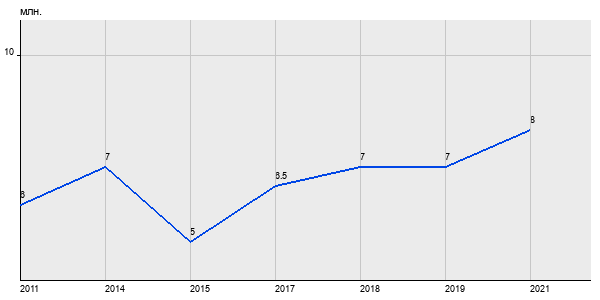 6 млн. руб, а в 2021 году - 8 млн. руб. Таким образом, средняя стоимость двухкомнатных квартир в районе "Перово" за