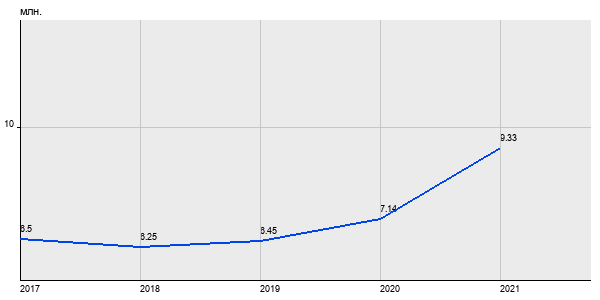 6.5 млн. руб, а в 2021 году - 9.33 млн. руб. Таким образом, средняя стоимость двухкомнатных квартир в районе "Чертаново Южное" за