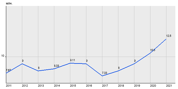 7.67 млн. руб, а в 2021 году - 12.5 млн. руб. Таким образом, средняя стоимость трёхкомнатных квартир в районе "Северное Тушино" за