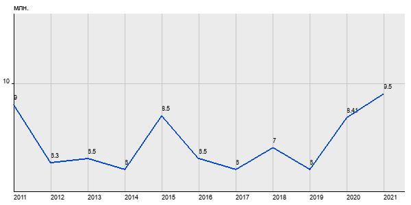9 млн. руб, а в 2021 году - 9.5 млн. руб. Таким образом, средняя стоимость двухкомнатных квартир в районе "Нижегородский" за