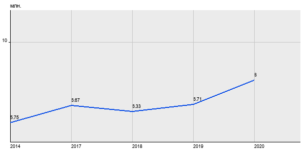 5.75 млн. руб, а в 2020 году - 8 млн. руб. Таким образом, средняя стоимость двухкомнатных квартир в районе "Гольяново" за