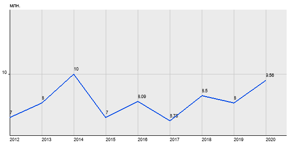 7 млн. руб, а в 2020 году - 9.56 млн. руб. Таким образом, средняя стоимость двухкомнатных квартир в районе "Кунцево" за