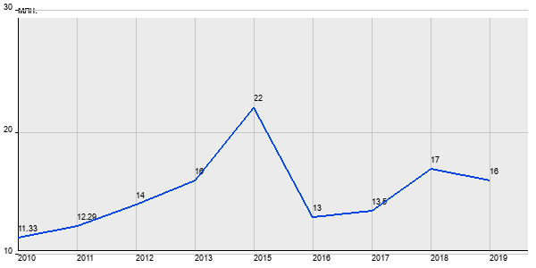 11.33 млн. руб, а в 2019 году - 16 млн. руб. Таким образом, средняя стоимость двухкомнатных квартир в районе "Красносельский" за