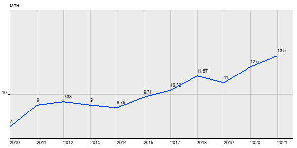 7 млн. руб, а в 2021 году - 13.5 млн. руб. Таким образом, средняя стоимость двухкомнатных квартир в районе "Даниловский" за