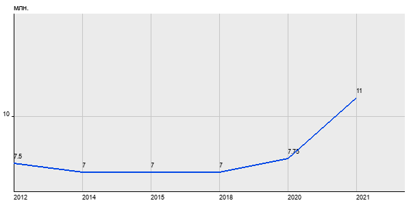 7.5 млн. руб, а в 2021 году - 11 млн. руб. Таким образом, средняя стоимость двухкомнатных квартир в районе "" за