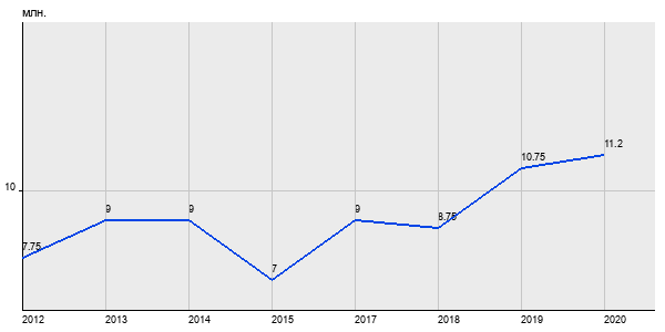 7.75 млн. руб, а в 2020 году - 11.2 млн. руб. Таким образом, средняя стоимость трёхкомнатных квартир в районе "Чертаново Северное" за