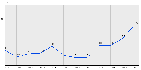 6 млн. руб, а в 2021 году - 9.25 млн. руб. Таким образом, средняя стоимость двухкомнатных квартир в районе "Выхино-Жулебино" за