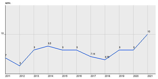 7 млн. руб, а в 2021 году - 10 млн. руб. Таким образом, средняя стоимость двухкомнатных квартир в районе "" за