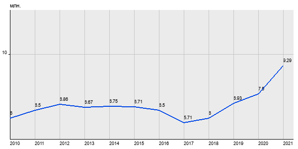 6 млн. руб, а в 2021 году - 9.29 млн. руб. Таким образом, средняя стоимость двухкомнатных квартир в районе "" за