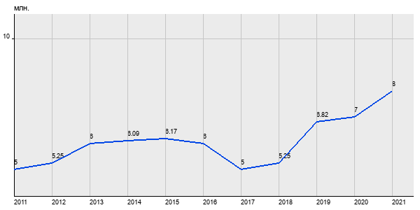 5 млн. руб, а в 2021 году - 8 млн. руб. Таким образом, средняя стоимость однокомнатных квартир в районе "Восточное Дегунино" за