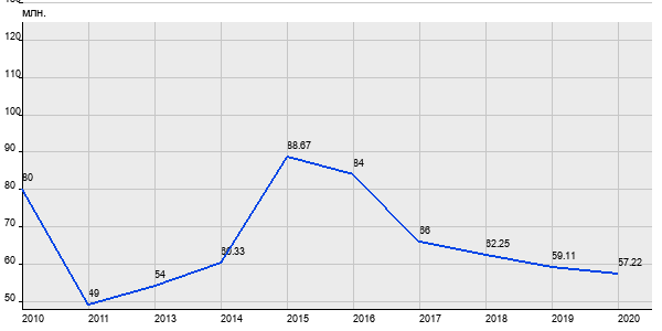 80 млн. руб, а в 2020 году - 57.22 млн. руб. Таким образом, средняя стоимость трёхкомнатных квартир в районе "Пресненский" за