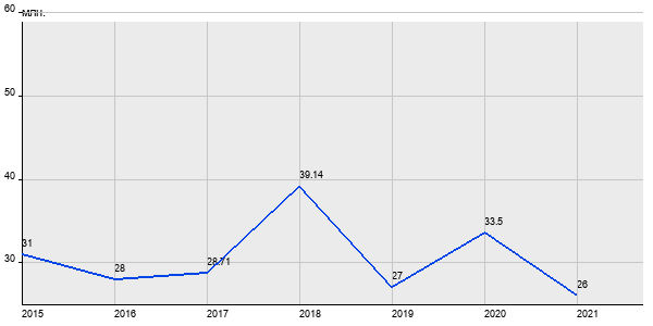 31 млн. руб, а в 2021 году - 26 млн. руб. Таким образом, средняя стоимость двухкомнатных квартир в районе "Пресненский" за
