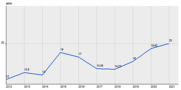 12 млн. руб, а в 2021 году - 20 млн. руб. Таким образом, средняя стоимость двухкомнатных квартир в районе "Хамовники" за