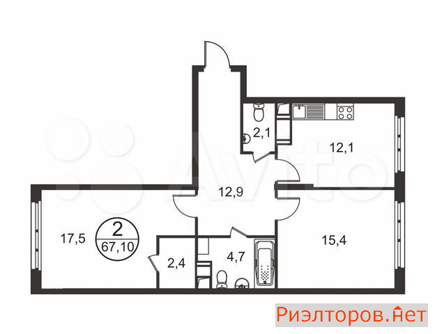 Квартира 2-к. 67.0 м2