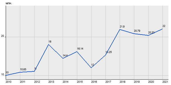 10 млн. руб, а в 2021 году - 22 млн. руб. Таким образом, средняя стоимость трёхкомнатных квартир в районе "Мещанский" за