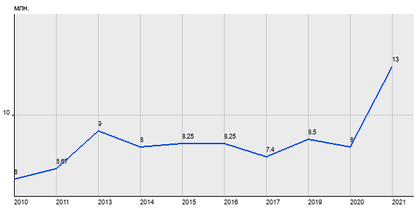 6 млн. руб, а в 2021 году - 13 млн. руб. Таким образом, средняя стоимость однокомнатных квартир в районе "Пресненский" за