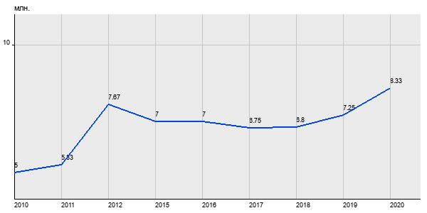5 млн. руб, а в 2020 году - 8.33 млн. руб. Таким образом, средняя стоимость двухкомнатных квартир в районе "Головинский" за