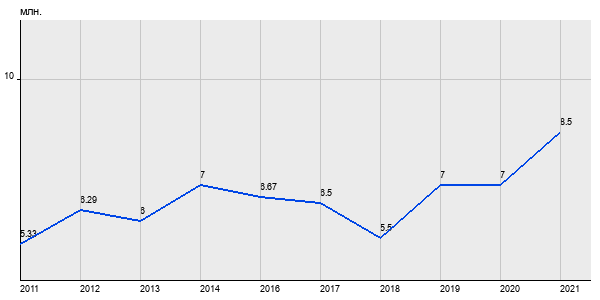 5.33 млн. руб, а в 2021 году - 8.5 млн. руб. Таким образом, средняя стоимость однокомнатных квартир в районе "Котловка" за