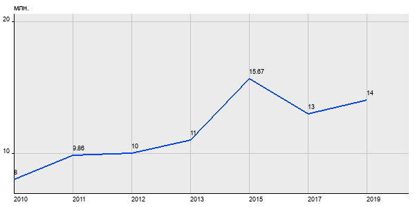 8 млн. руб, а в 2019 году - 14 млн. руб. Таким образом, средняя стоимость двухкомнатных квартир в районе "Якиманка" за