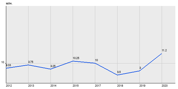 9.33 млн. руб, а в 2020 году - 11.2 млн. руб. Таким образом, средняя стоимость двухкомнатных квартир в районе "Хорошёвский" за