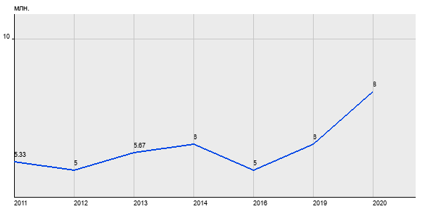 5.33 млн. руб, а в 2020 году - 8 млн. руб. Таким образом, средняя стоимость двухкомнатных квартир в районе "Метрогородок" за