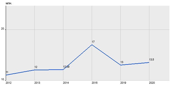 11 млн. руб, а в 2020 году - 13.5 млн. руб. Таким образом, средняя стоимость двухкомнатных квартир в районе "Филёвский Парк" за