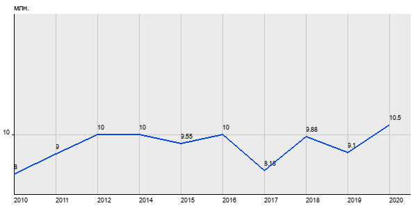 8 млн. руб, а в 2020 году - 10.5 млн. руб. Таким образом, средняя стоимость двухкомнатных квартир в районе "" за
