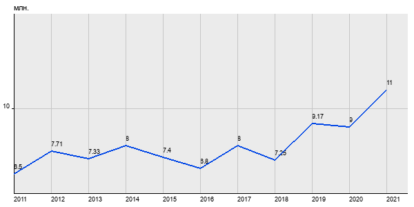 6.5 млн. руб, а в 2021 году - 11 млн. руб. Таким образом, средняя стоимость трёхкомнатных квартир в районе "Северное Измайлово" за