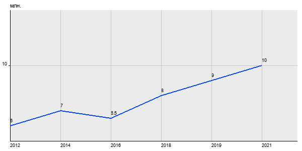 6 млн. руб, а в 2021 году - 10 млн. руб. Таким образом, средняя стоимость двухкомнатных квартир в районе "Хорошёво-Мнёвники" за