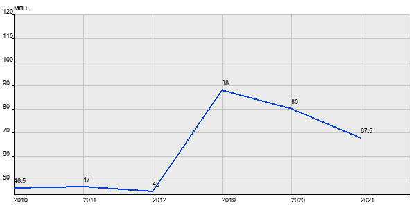 46.5 млн. руб, а в 2021 году - 67.5 млн. руб. Таким образом, средняя стоимость четырёхкомнатных квартир в районе "Хамовники" за