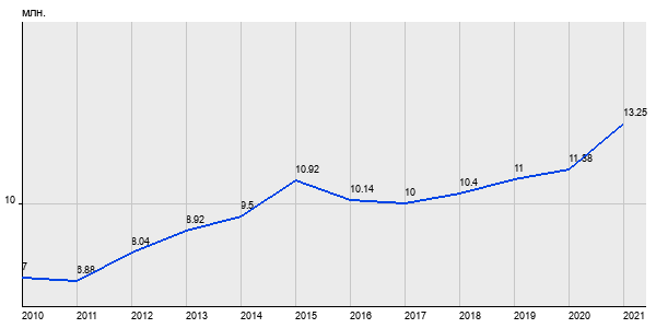 7 млн. руб, а в 2021 году - 13.25 млн. руб. Таким образом, средняя стоимость двухкомнатных квартир в районе "Тверской" за