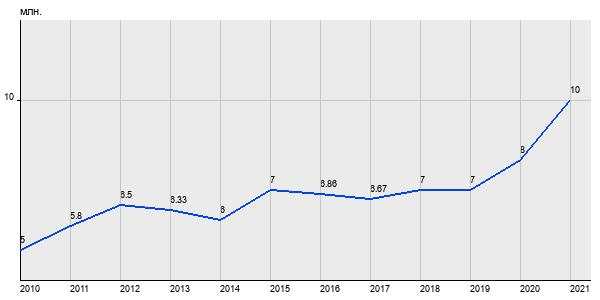 5 млн. руб, а в 2021 году - 10 млн. руб. Таким образом, средняя стоимость двухкомнатных квартир в районе "Бибирево" за