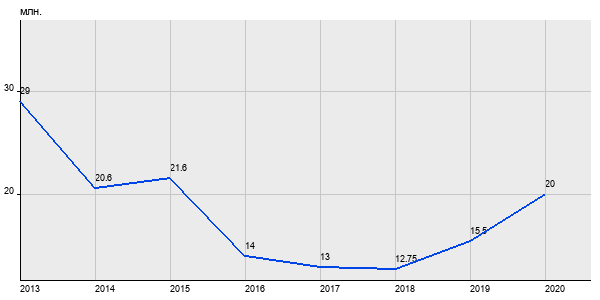 29 млн. руб, а в 2020 году - 20 млн. руб. Таким образом, средняя стоимость двухкомнатных квартир в районе "Раменки" за