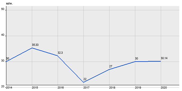 30 млн. руб, а в 2020 году - 30.14 млн. руб. Таким образом, средняя стоимость двухкомнатных квартир в районе "Хорошёвский" за