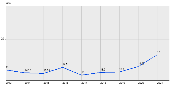 14 млн. руб, а в 2021 году - 17 млн. руб. Таким образом, средняя стоимость двухкомнатных квартир в районе "Обручевский" за