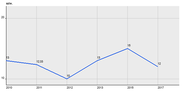 13 млн. руб, а в 2017 году - 12 млн. руб. Таким образом, средняя стоимость трёхкомнатных квартир в районе "Вешняки" за