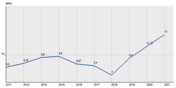8.2 млн. руб, а в 2021 году - 13 млн. руб. Таким образом, средняя стоимость двухкомнатных квартир в районе "" за