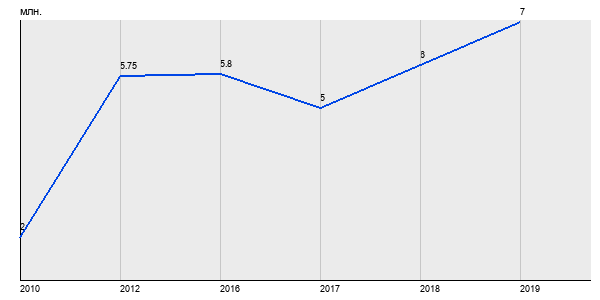 2 млн. руб, а в 2019 году - 7 млн. руб. Таким образом, средняя стоимость двухкомнатных квартир в районе "Люблино" за