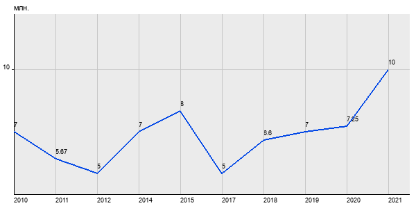7 млн. руб, а в 2021 году - 10 млн. руб. Таким образом, средняя стоимость двухкомнатных квартир в районе "Восточное Измайлово" за