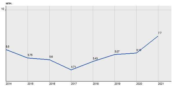 6.5 млн. руб, а в 2021 году - 7.7 млн. руб. Таким образом, средняя стоимость однокомнатных квартир в районе "Братеево" за