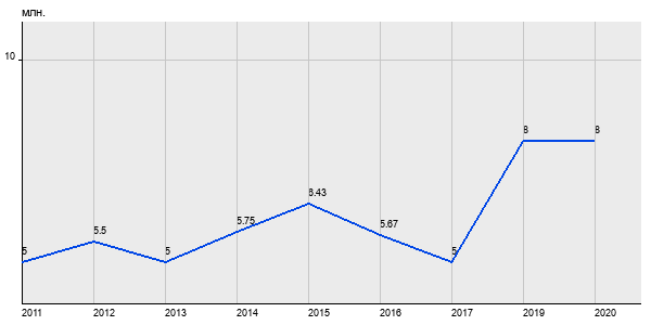 5 млн. руб, а в 2020 году - 8 млн. руб. Таким образом, средняя стоимость двухкомнатных квартир в районе "Люблино" за