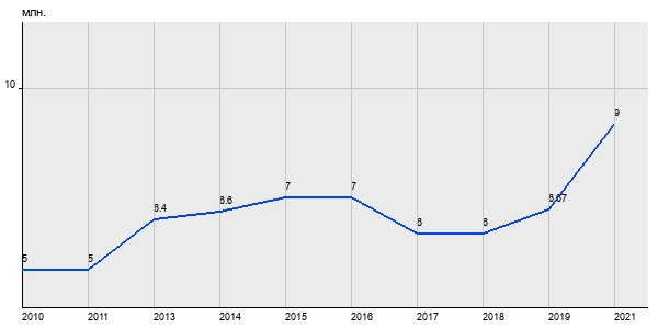 5 млн. руб, а в 2021 году - 9 млн. руб. Таким образом, средняя стоимость однокомнатных квартир в районе "Южное Медведково" за